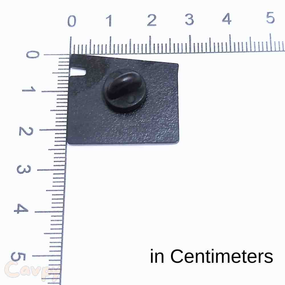 Equipped with a reliable black rubber clutch back for easy attachment and a secure fit. This pin won’t desert you faster than a side character in a horror movie.